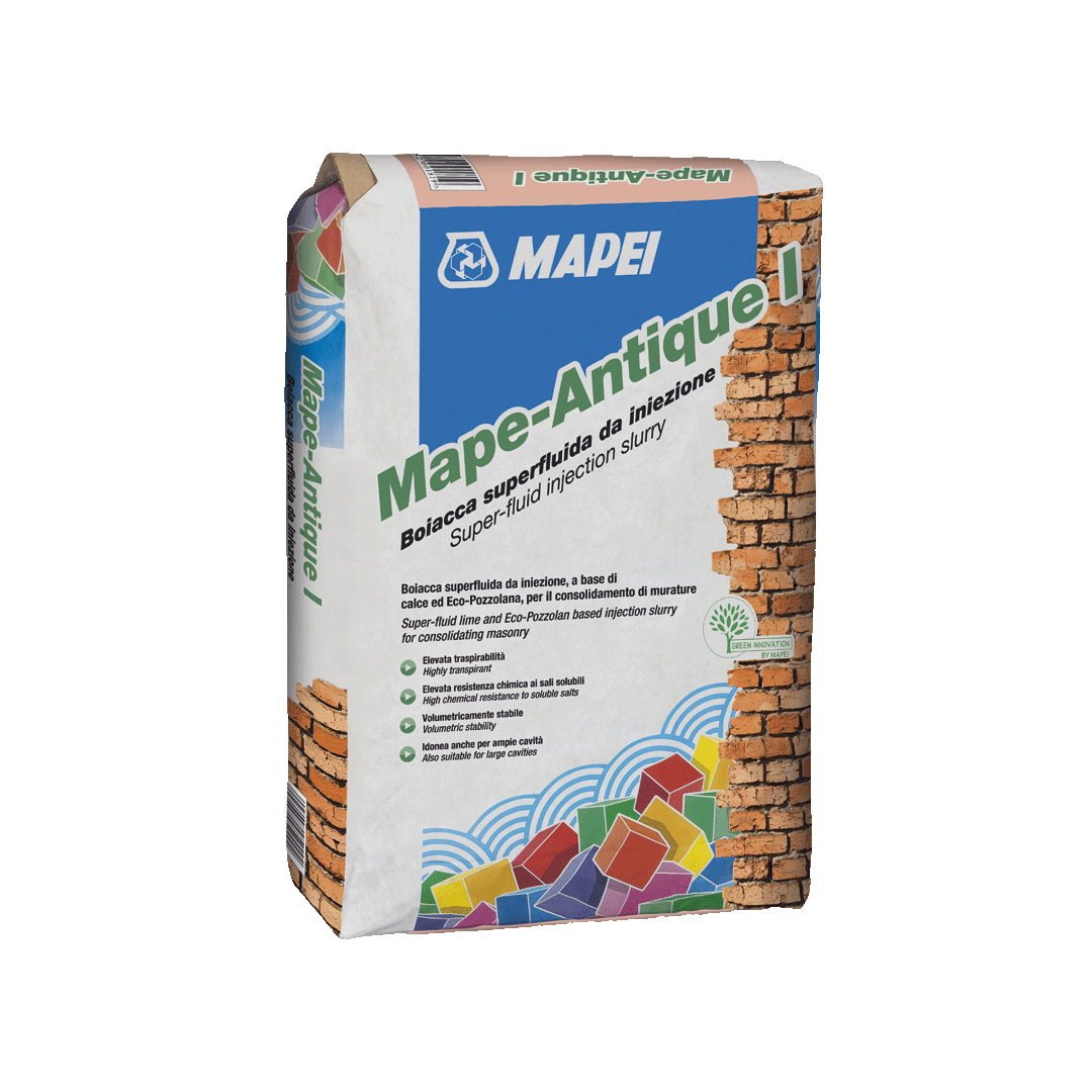 Mape-Antique I ir injekciju javas sausais maisījums, kas speciāli izveidots atbilstoši šīm prasībām un ir piemērots mūru stiprināšanai un strukturālo plaisu aizpildīšanai vēsturisko būvju restaurācijas un atjaunošanas laikā.