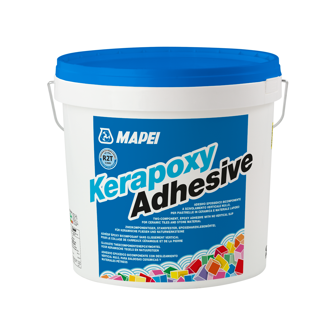 Улучшенный двухкомпонентный реактивный эпоксидный клей класса R2T без сползания на вертикальных поверхностях для укладки керамической плитки и камня.