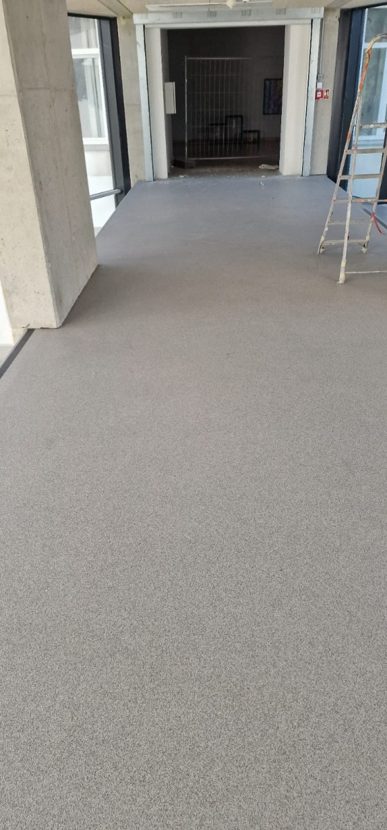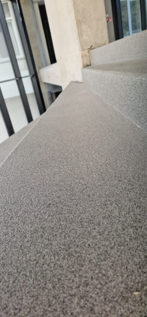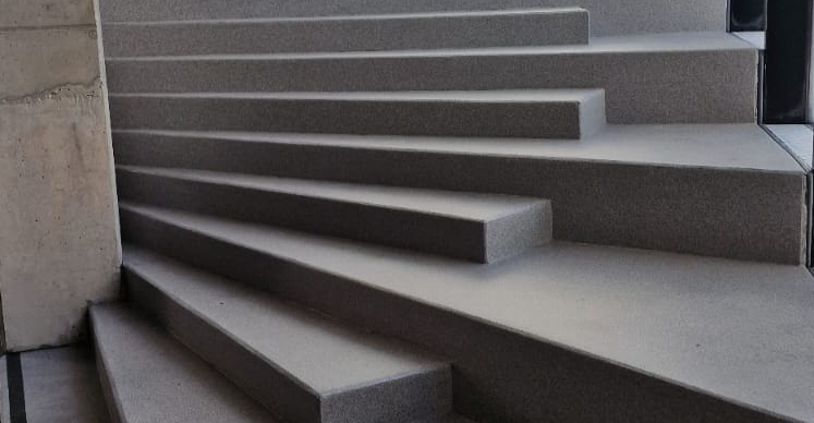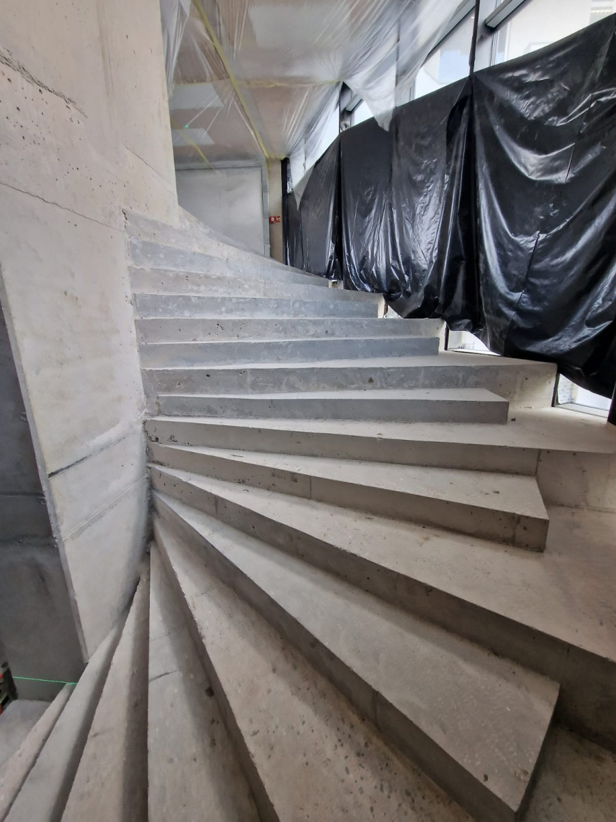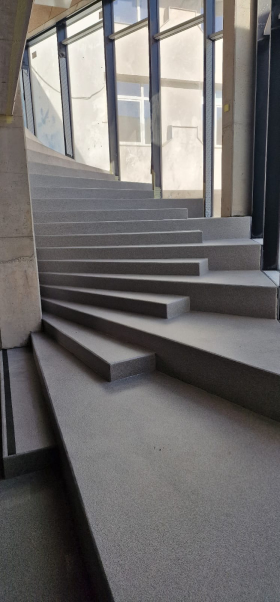 Betona kāpnes tika remontētas ar smalkas frakcijas remontjavu Plan R 35 Plus un pārklātas ar epoksīdsveķu pārklājumu Mapecoat Universal + kvarca smiltis. Izveidotajam pārklājumam piemīt augsta mehāniskā izturība, kā arī tas nodrošina neslīdošu virsmu.